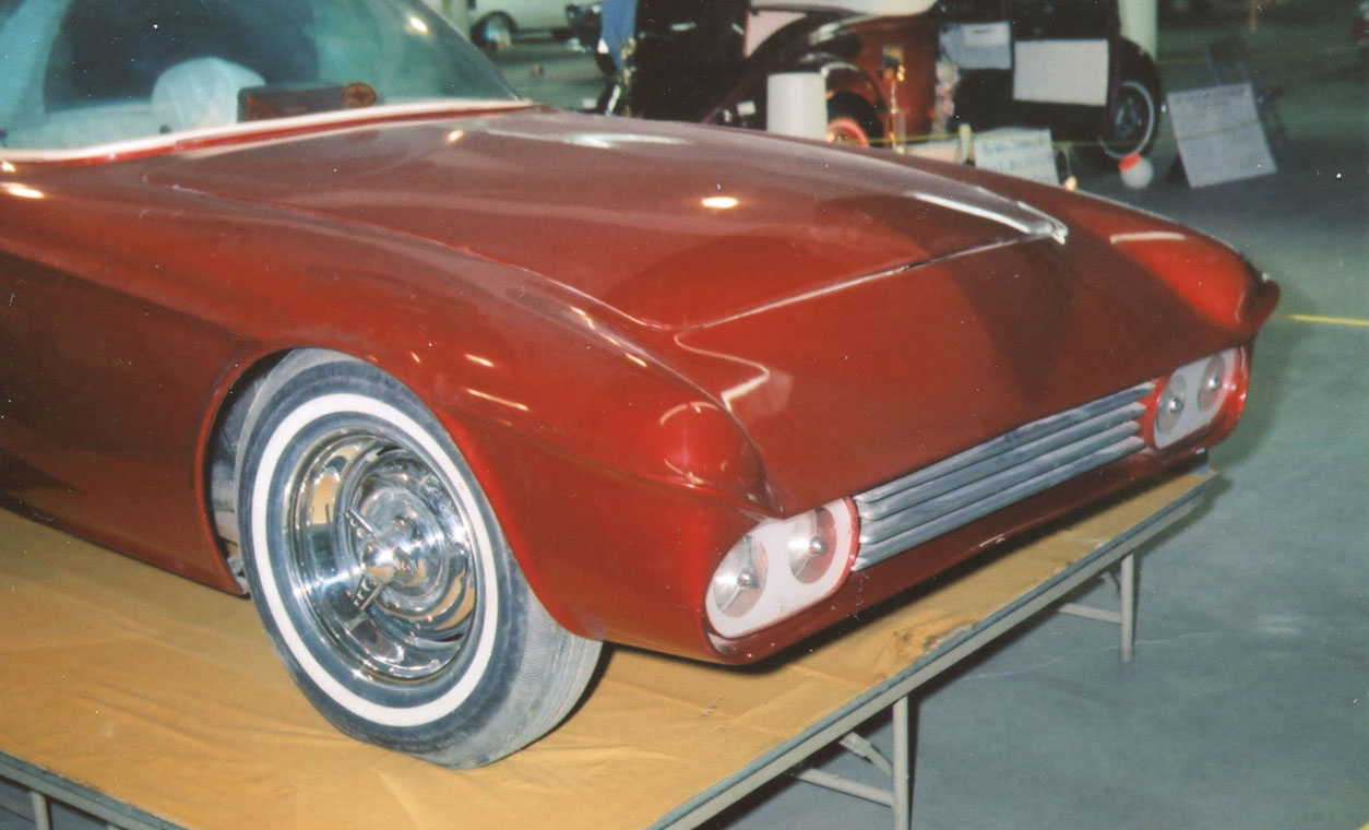 Work started in 1959 when Starbird removed the many damaged factory panels and initially replaced some of the panels with used factory stock sheetmetal so that he could have a complete car to commence his work.